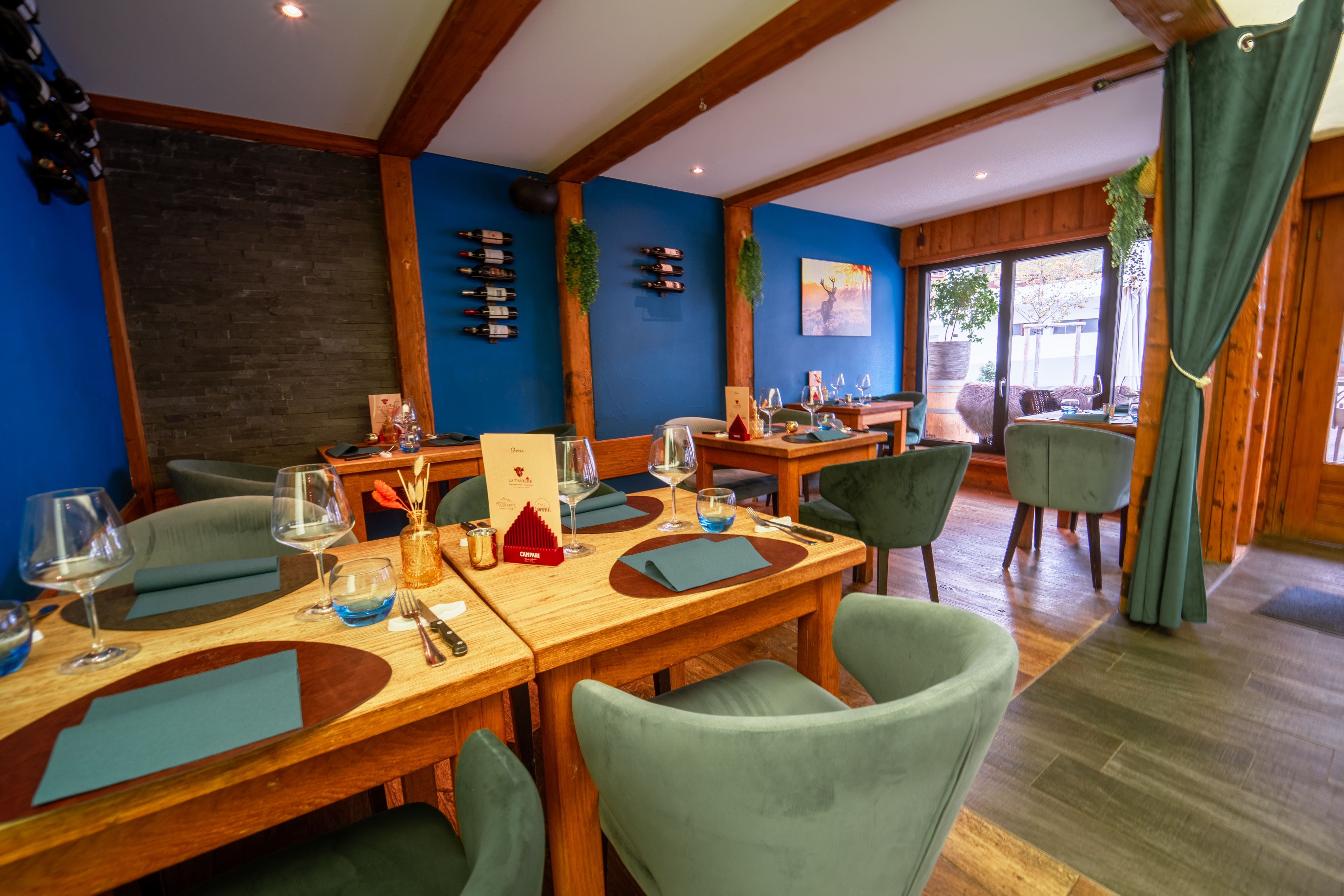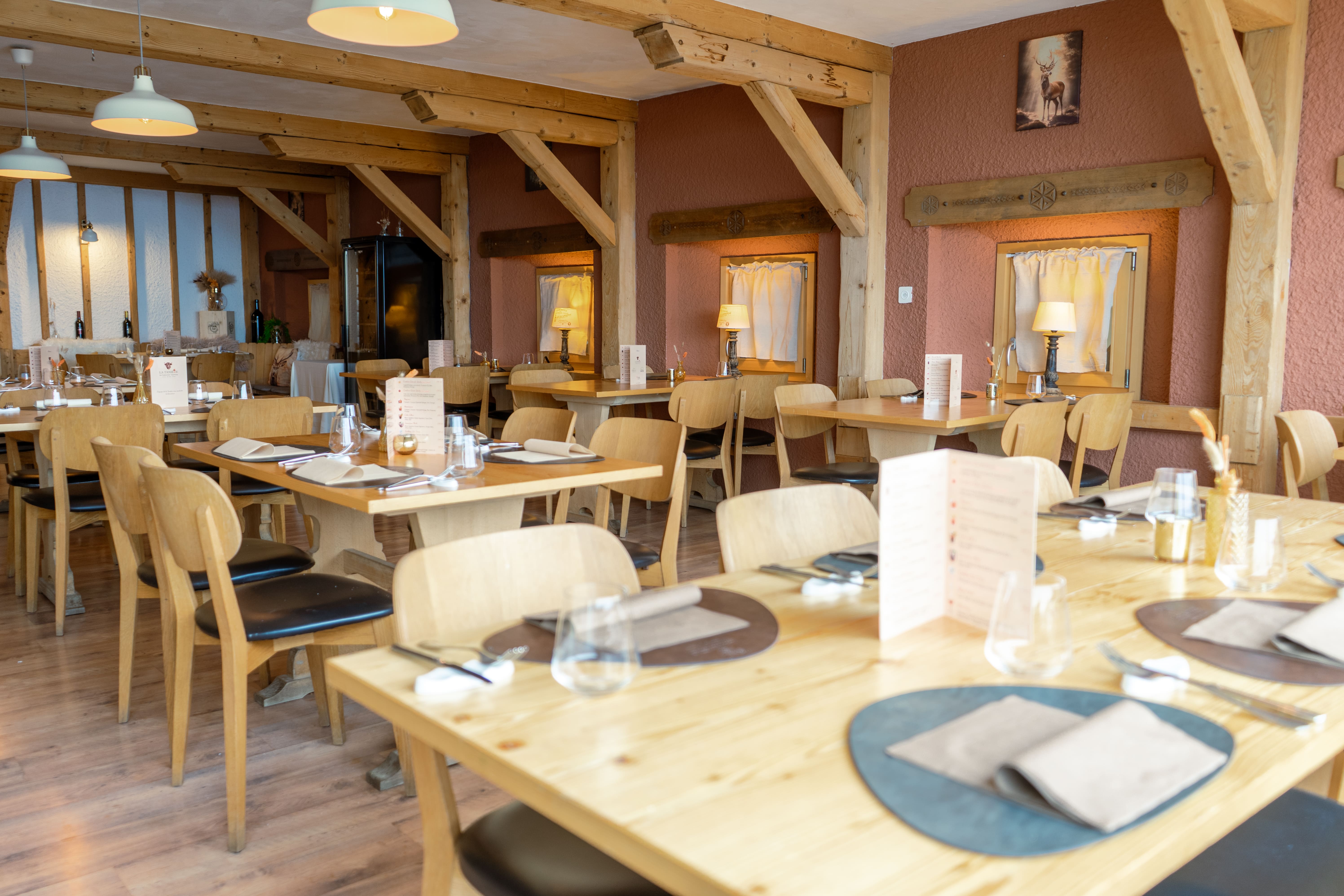 La salle de restaurant mixant modernisme et tradition du bois offre une ambiance conviviale et chaleureuse. Les familles sont bienvenues et les infrastructures sont adaptées et accueillantes pour les enfants en bas âge (menu pour enfants, chaises hautes et réhausseurs, coloriages, table à langer, chauffe biberon). Signalez-nous la venue de vos enfants en bas âge, nous mettrons volontiers en place leur accueil.